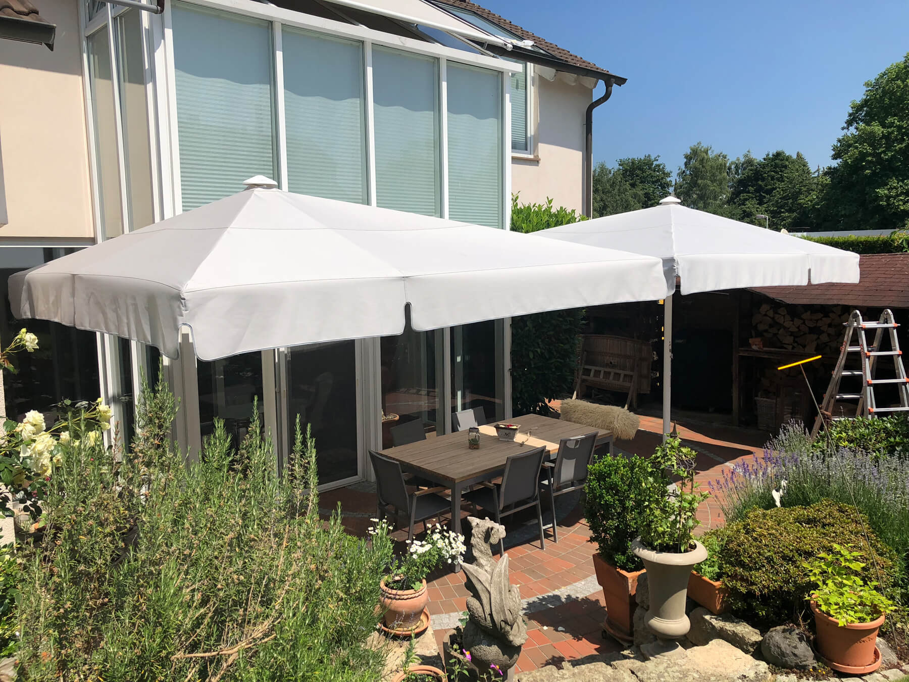 Für zuverlässigen Sonnen- und Regenschutz bieten unsere Schirme eine optimale Lösung - besonders in engen Platzverhältnissen.